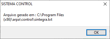 DICA EXTRA: pode ir na área de trabalho e clicar com o botão direito do mouse no atalho do sistema control e escolher a opção abrir local do arquivo que já vai direto para a pasta que está o arquivo sintegra que foi gerado.