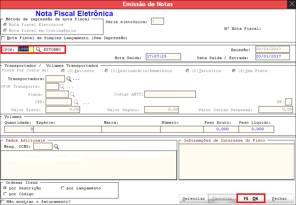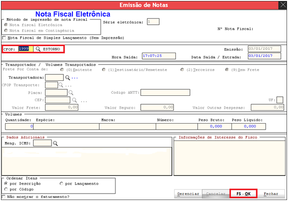 > Confirmar o CFOP de Estorno e clicar em Ok:
