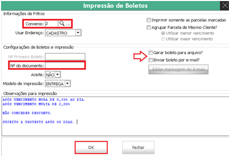 - Gerar Boleto para Arquivo? (caso queira salvar o boleto no computador);