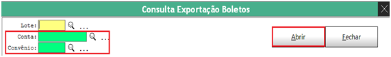 - Informar a Conta e o Convênio. Clicar em Abrir: