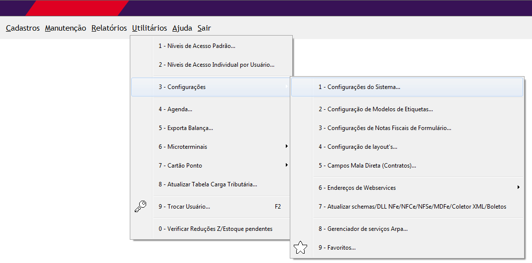 Para fazer essa alteração será necessário acessar o menu: Utilitários > Configurações > Configurações do Sistema: