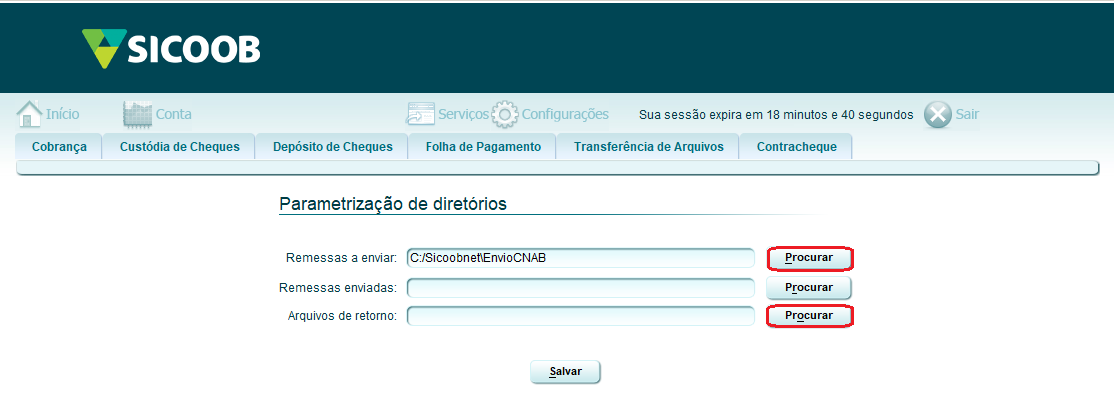 Clicando no botão procurar é só escolher a pasta que deseja salvar, sugerimos escolher uma pasta para a remessa a enviar e outra para o retorno