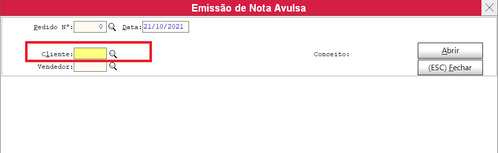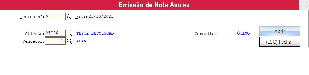 Obs: neste caso quando clicar na lupa cliente, cadastre o fornecedor como cliente para poder emitir nota avulsa.