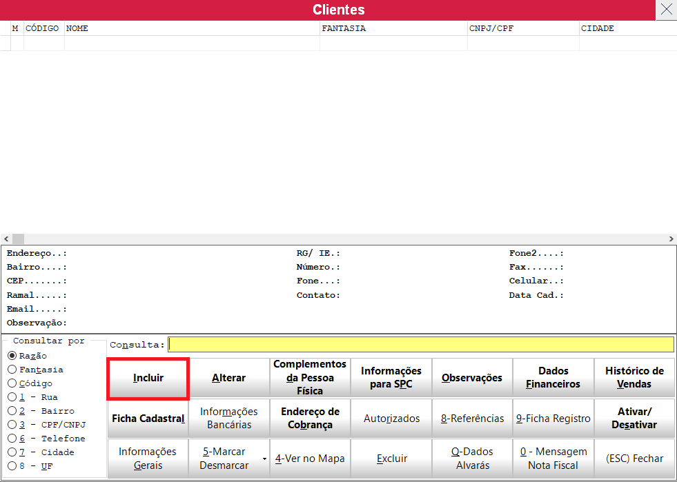 irá abrir esta tela para poder incluir.