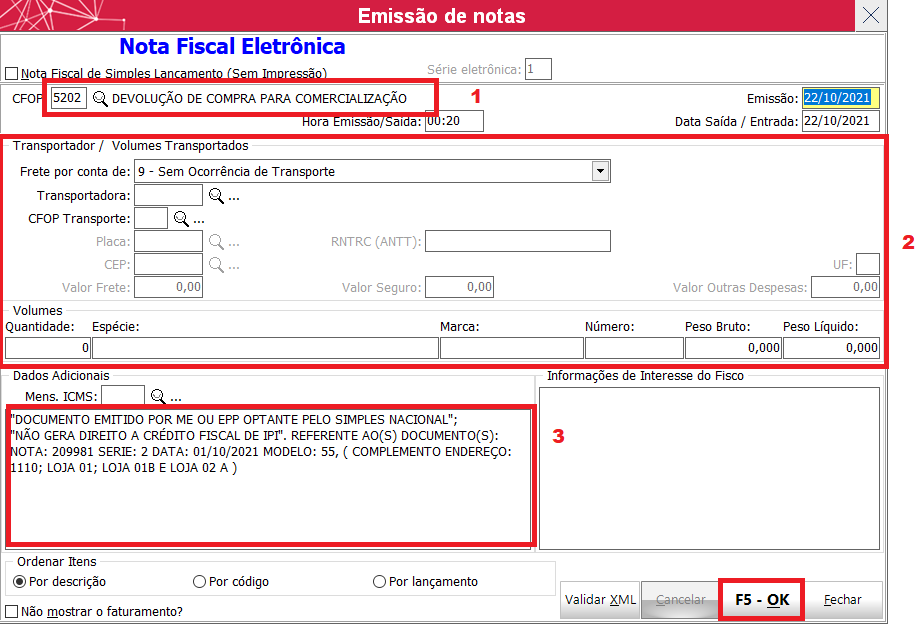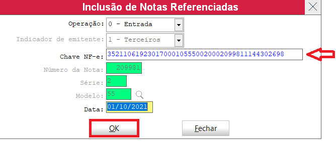 Após confirmar o lançamento da nota referenciada, clica em fechar