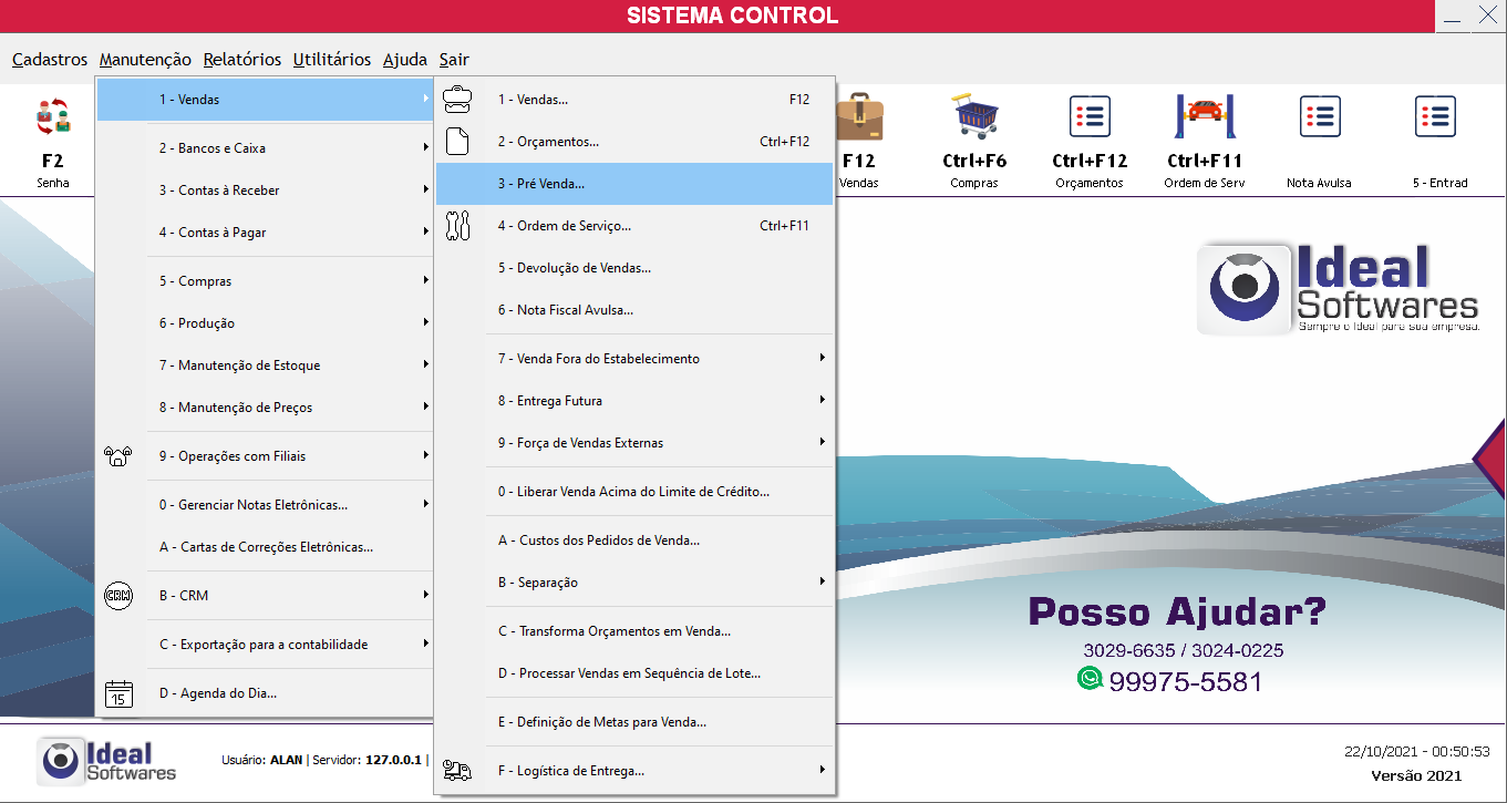 Neste tutorial iremos separar itens de uma venda e o sistema irá criar outra venda automaticamente com os itens que foram separados.