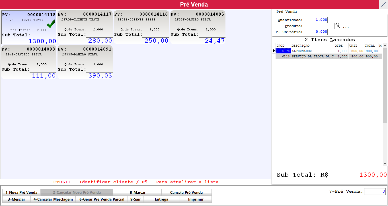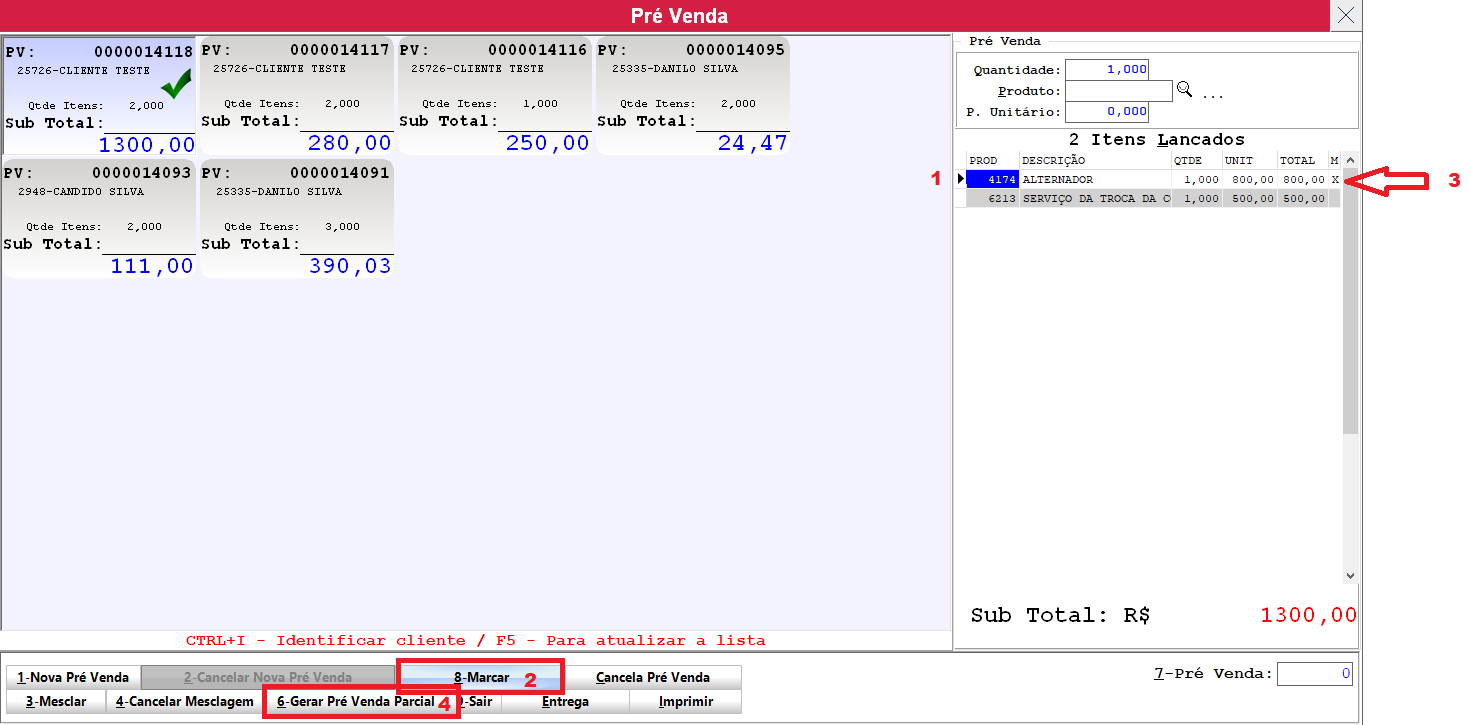 4- Clicar em Gerar Pré Venda Parcial