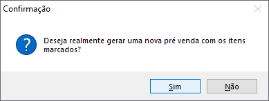 Irá abrir a tela para confirmar a criação de pré venda parcial