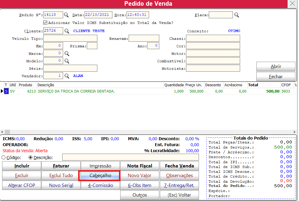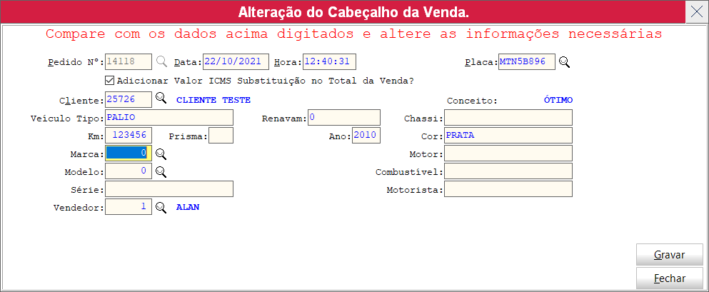 vai abrir a tela pra inserir os dados do veiculo no cabeçalho