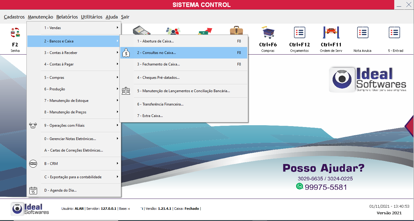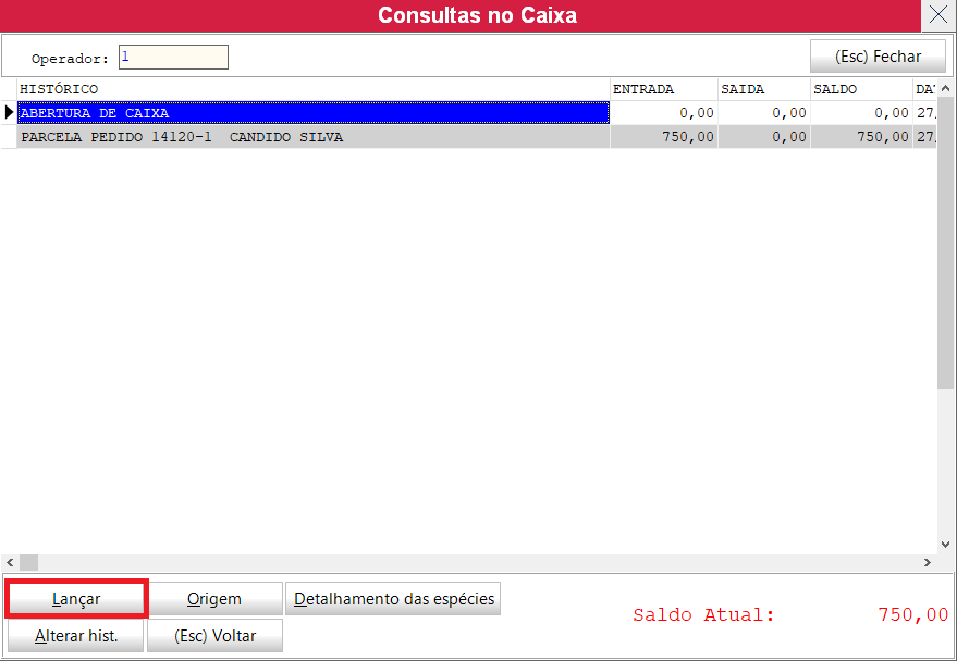 Lançamento de despesas ou recebimentos diretamente no caixa. É só ir em Manutenção - Bancos e caixa - Consultas no Caixa ou usar o atalho F8