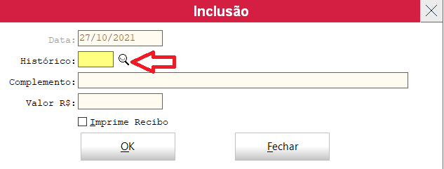 Quando clicar em lançar vai abri a tela para escolhermos o tipo de histórico se é de despesa ou receita.