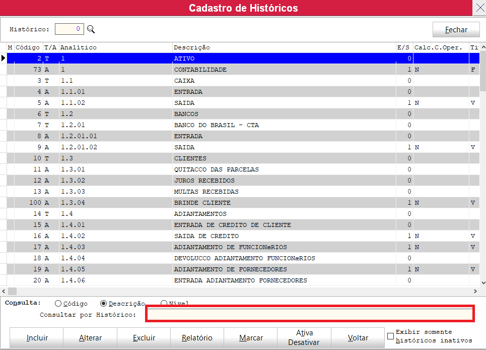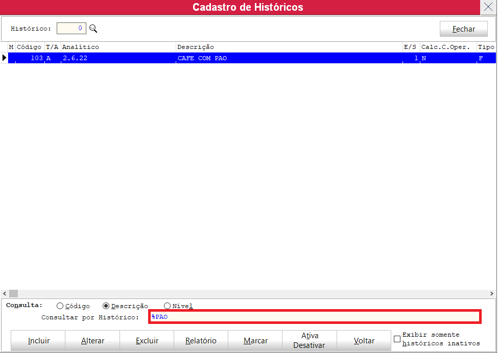 ao apertar ENTER com o histórico selecionado abrirá a seguinte tela.