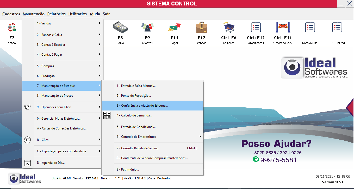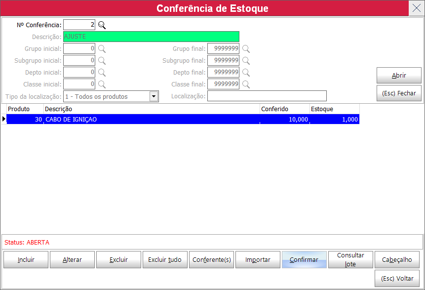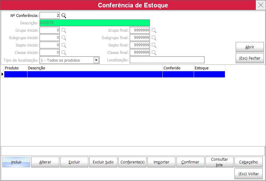 Após terminar de lançar os itens é só clicar em fechar para voltar para a tela inicial da conferencia do estoque e deve clicar em CONFIRMAR.