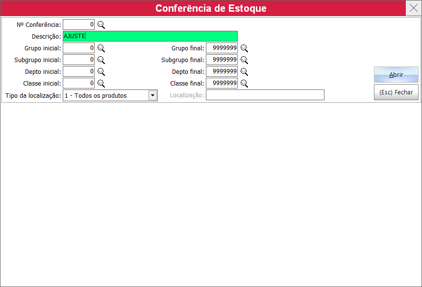 Vai abrir esta tela e você pode colocar a descrição que preferir, neste caso digitei AJUSTE e depois é só clicar em ABRIR