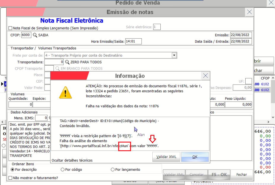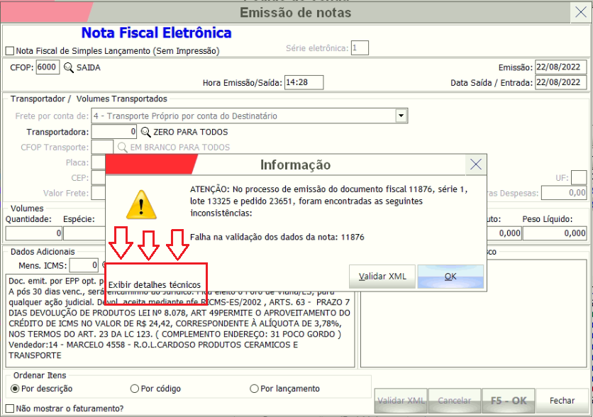 sem o código do município não permite aprovar a nota. Para corrigir você deve clicar em EXIBIR DETALHES TÉCNICOS
