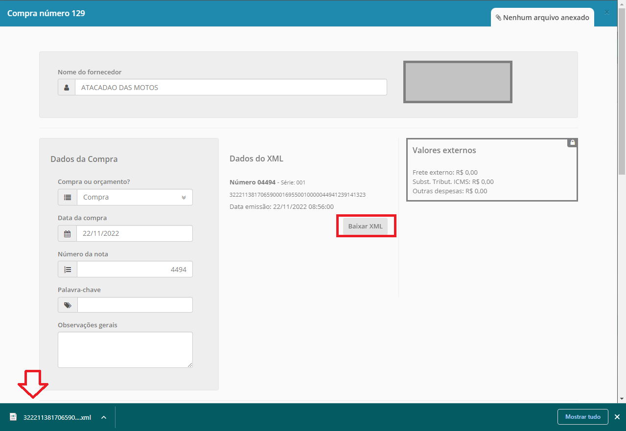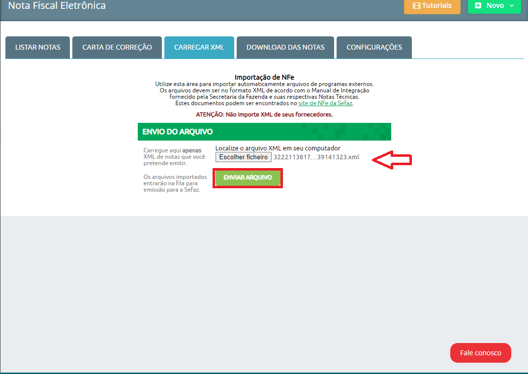 Após baixar o xml nós iremos importar para utilizar estas informações na emissão da nota de devolução.
