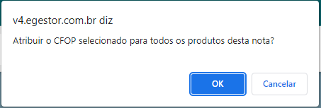 No passo 2 quando perguntar clicar em OK para atribuir a alteração do CFOP de devolução para todos os produtos.