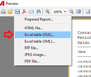 Quando estiver na tela de impressão do relatório é só clicar em salvar para escolher as opções para salvamento