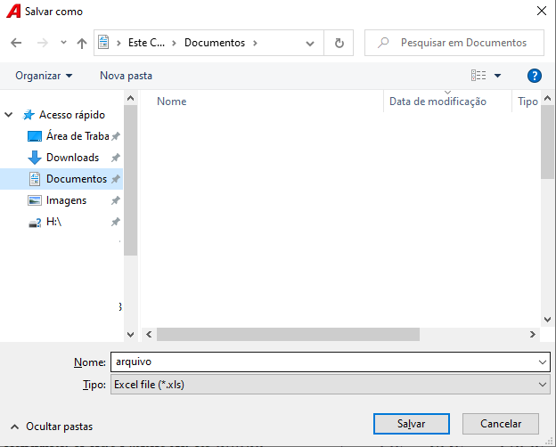 Após clicar vai abrir as opções para escolher salvar em Excel