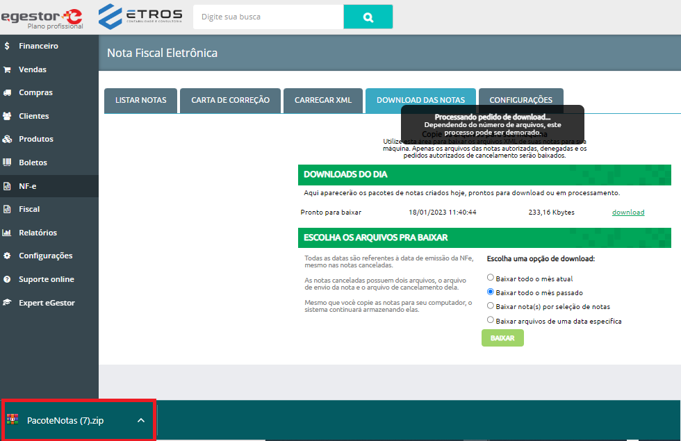 1- Vamos baixa os XMLs de venda para enviar para contabilidade