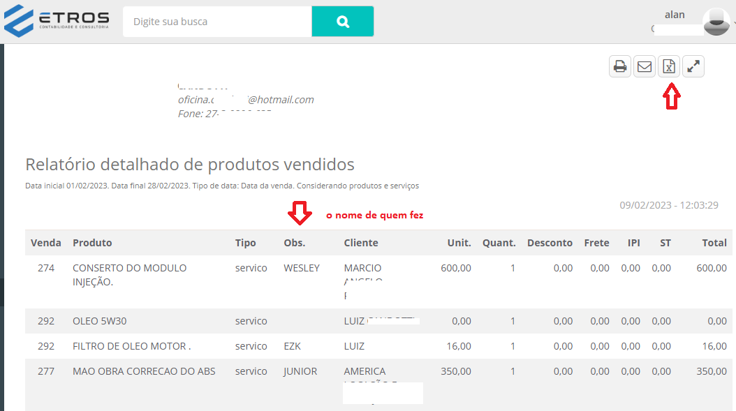 O relatório lista quem fez, mas não calcula a comissão, porem tem a possibilidade de exportar para o excel e assim poder trabalhar com estes dados.