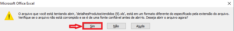 Se ao abrir o relatorio em excel der esta mensagem, é só clicar em SIM