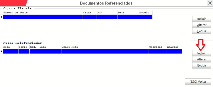 > Após referenciar a nota, volte para a tela principal e clique em Nota Fiscal: