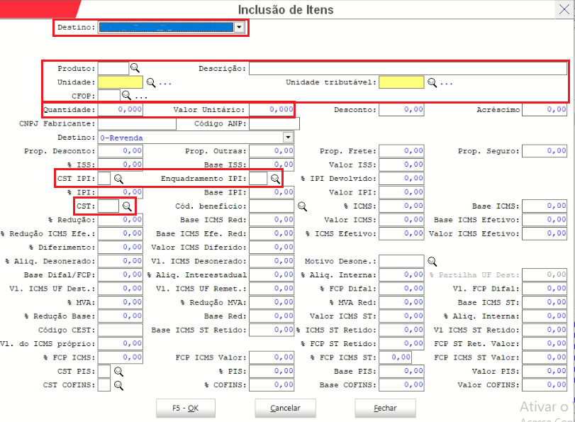 > Lançando todos os itens, fechar a tela de Inclusão de Itens.