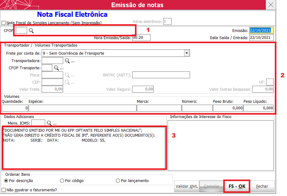 Vai abrir a tela de dados da nota para inserir as informações importantes na emissão.