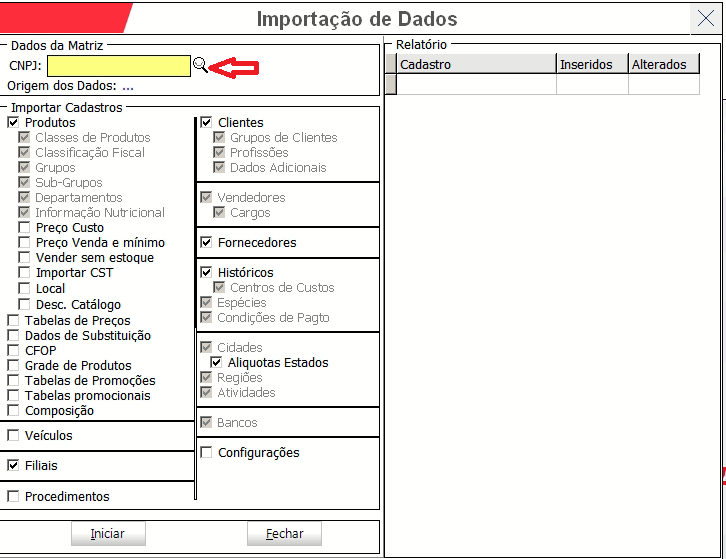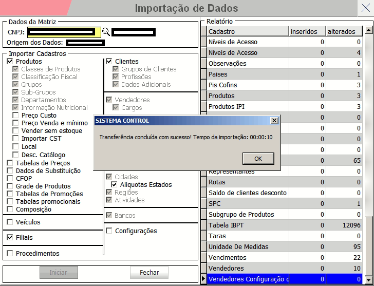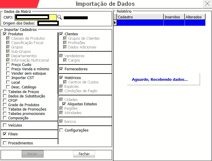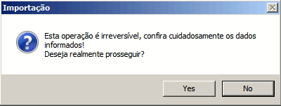 após clicar em INICIAR vai aparecer uma mensagem informando os cuidados com a importação
