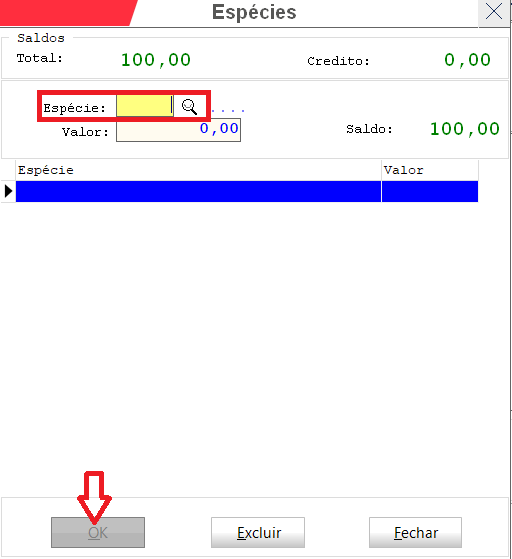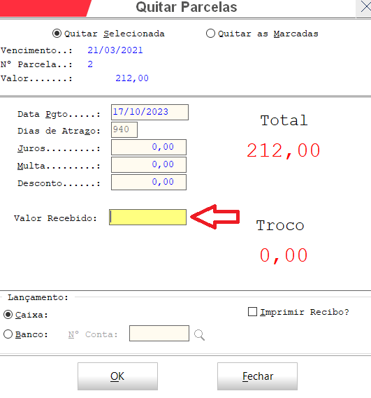 > Informar se irá receber o valor (que está sendo quitado parcialmente) pelo Caixa ou Banco e clique em OK: