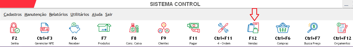 Para abrir um novo pedido de venda, tecle F12 ou clique no ícone Vendas: