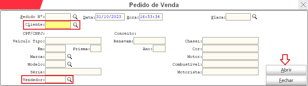 - É necessário informar o Cliente e o Vendedor. Os demais campos poderão ser preenchidos de acordo com a necessidade: