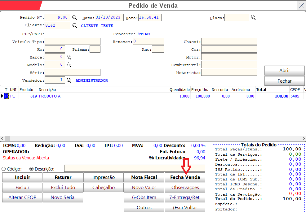 - Após emissão da nota, clique em Fecha Venda para finalizar:
