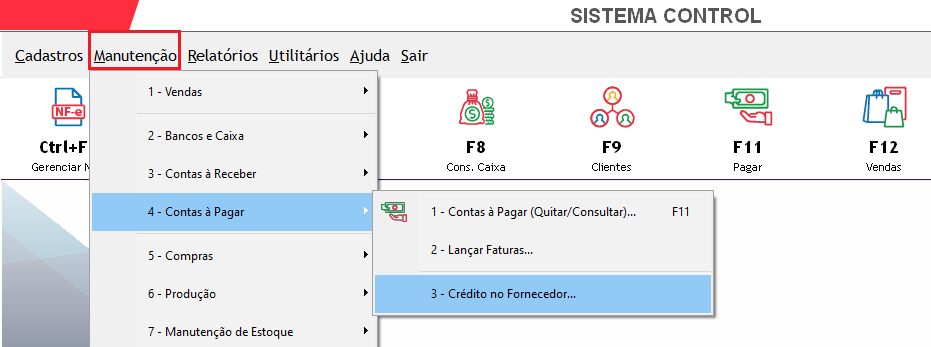 > Manutenção - Contas a Pagar - Crédito no fornecedor