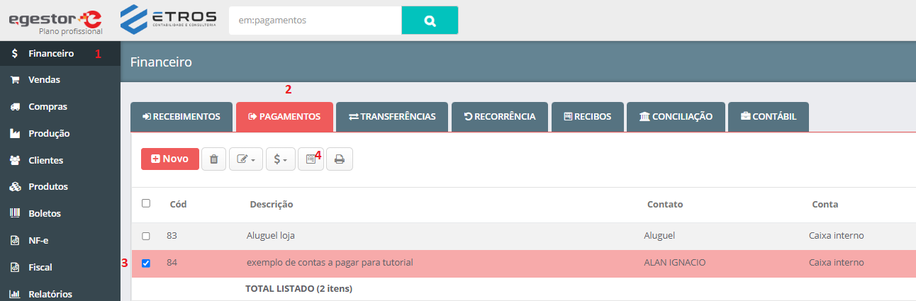Para emitir o recibo de pagamento no eGestor é só seguir os passos a seguir
