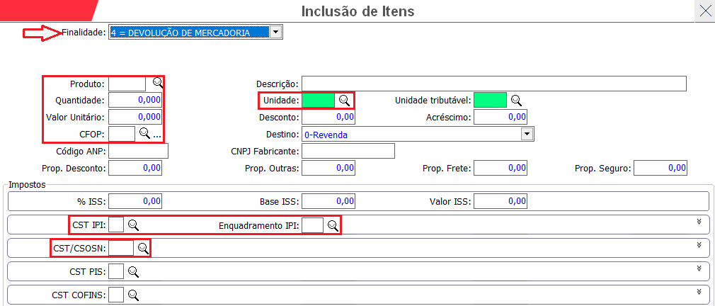 - Informe a Finalidade: 4=Devolução de Mercadoria