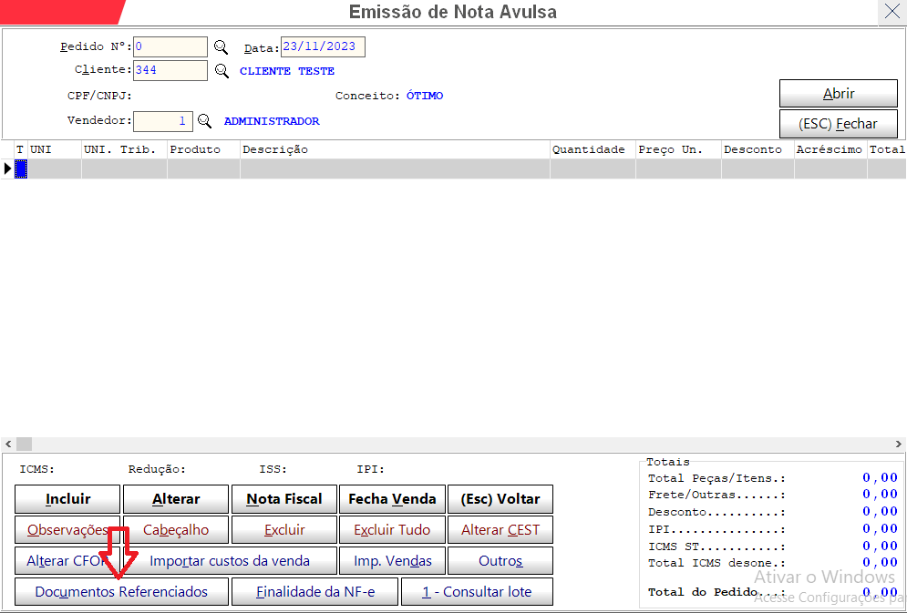 Caso tenha mais Itens, repetir o processo. Quando acabar, clicar em Documentos Referenciados
