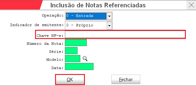 Quando digitar a chave e apertar ENTER os campos em verde serão preenchidos automaticamente. Depois, clicar em OK: