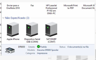 Acesse no seu computador: Painel de Controle\Hardware e Sons\Dispositivos e Impressoras: Verifique em qual porta COM sua Daruma 800 está conectada. Aqui no nosso exemplo a impressora está configurada na porta COM4