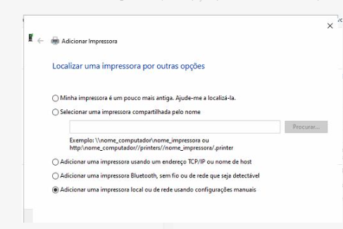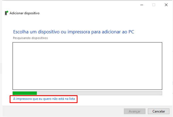 Na tela abaixo, clique em "A impressora que eu quero não está na lista".