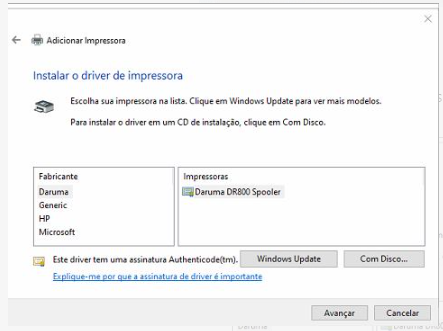 Após escolha o driver da impressora, que instalamos com o spooler da DR800.