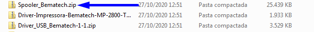 3 pastas serão extraídas. A Spooler_Bematech é a que deve ser utilizada. Extraia ela e verá que será criado uma pasta com o mesmo nome. Entre nesta pasta