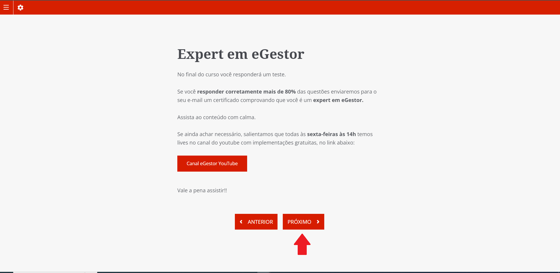 Segue passo a passo para acessar o treinamento do eGESTOR
