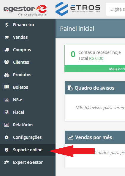 Ao entrar no sistema, vai no menu da esquerda e clique em suporte online