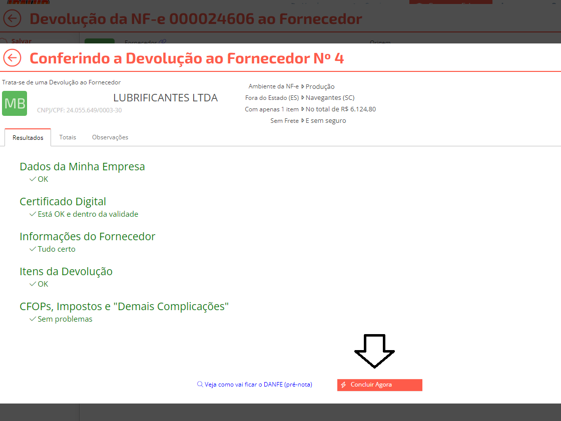 Se estiver tudo certo é só clicar em concluir para emitir a nota