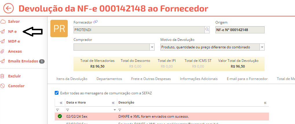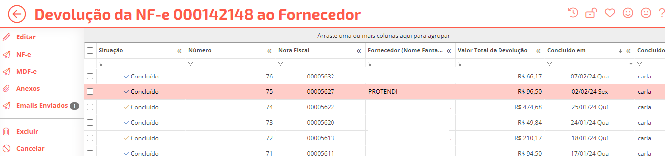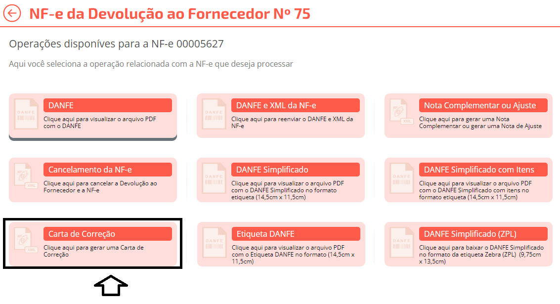 Quando houver necessidade de realizar uma carta de correção após ter feito a devolução de compra, segue este passo a passo