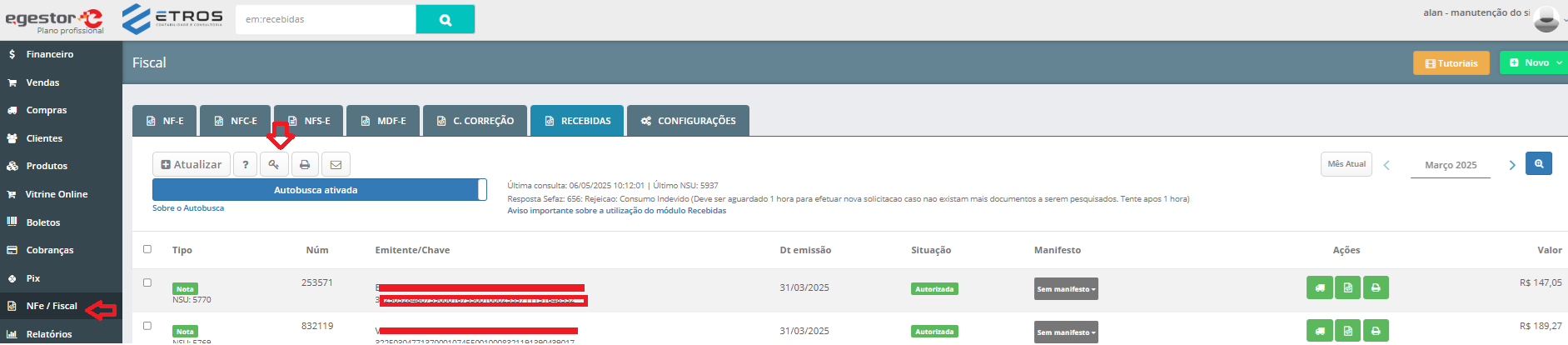 Assim a nota vai aparecer na listagem para que possa ser baixado o xml, dar entrada no estoque ou manifestar