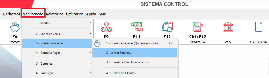 Manutenção – 3.Contas à Receber – 2.Lançar Faturas