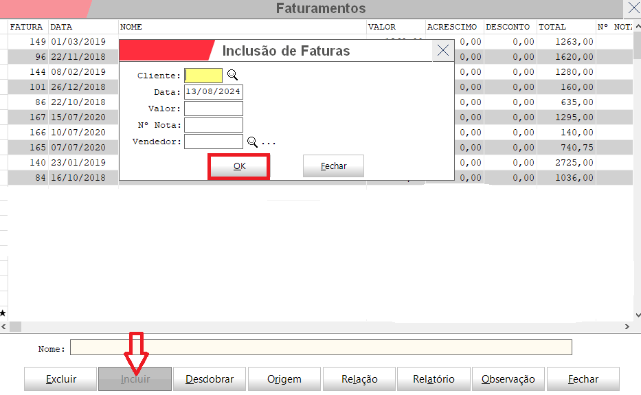 Clicar em Incluir e inserir as informações necessárias. Depois clicar em OK: